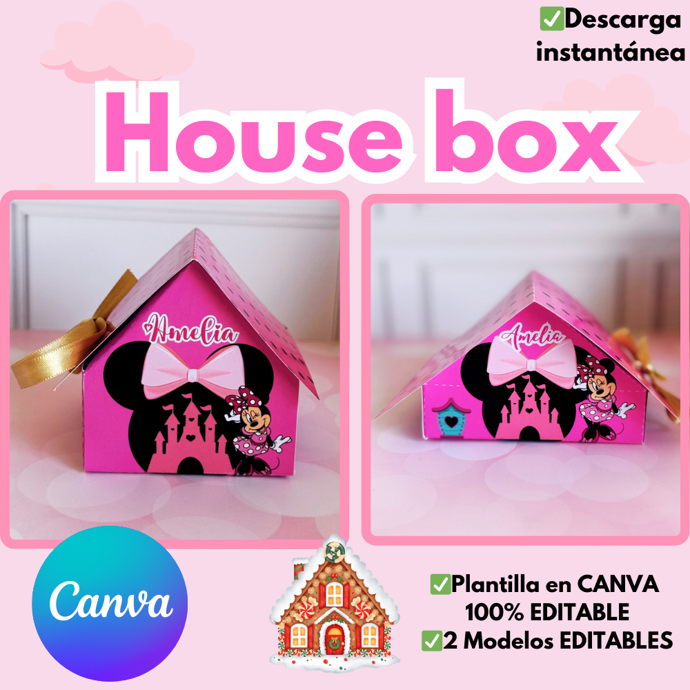 Cajita House Box dos tamaño editable para CAnVA, incluye plantilla para caja y tapa, dulcero personalizado.