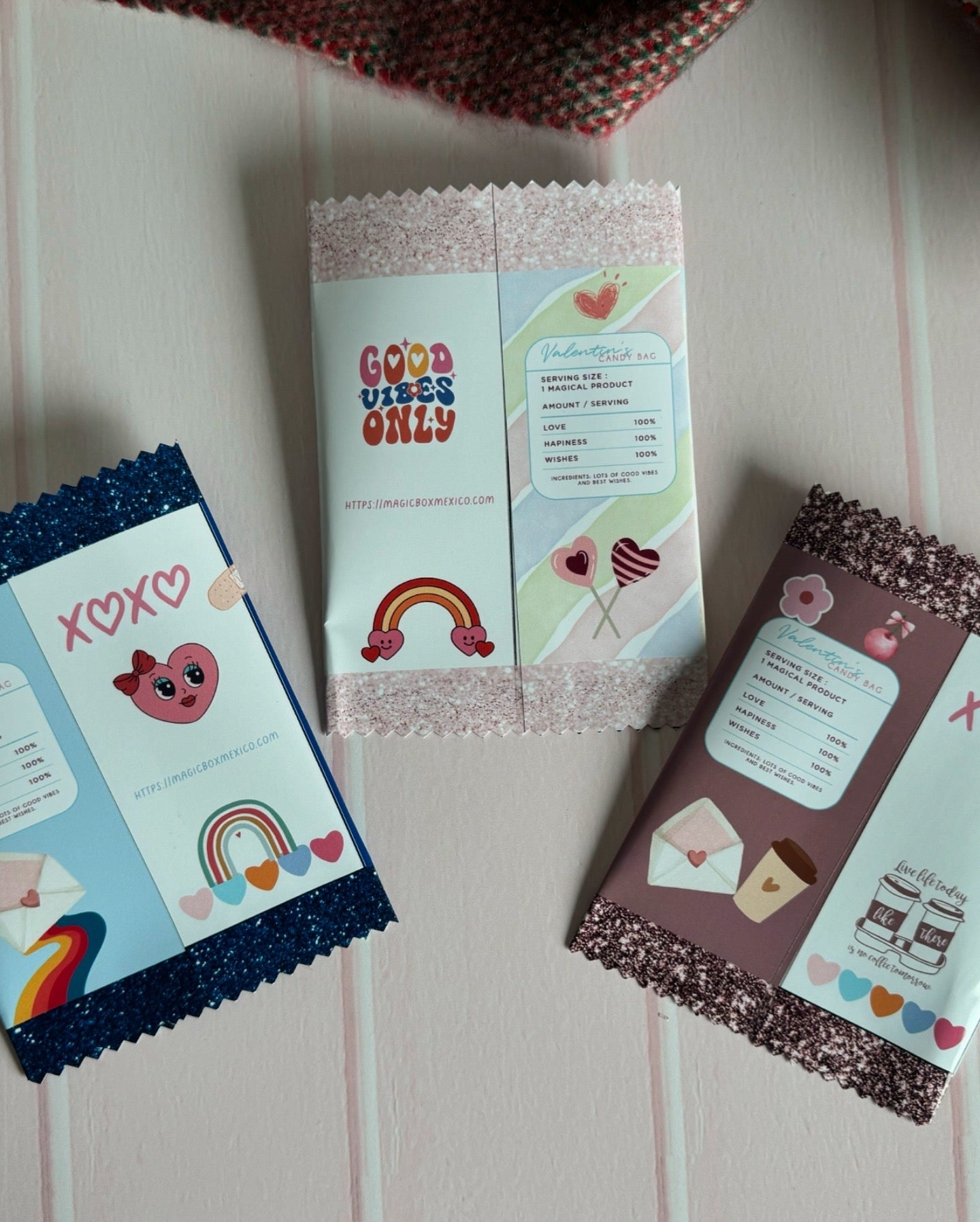 Incluye 6 diseños de candy bags en 3 hojas, diseños listos para imprimir en formato PNG y pdf