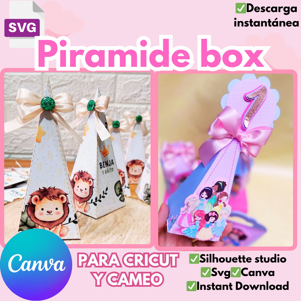 Canva, Plantilla editable para Piramide Box, editable para Canva, formato svg para cricut y silhouette studio para Cameo.