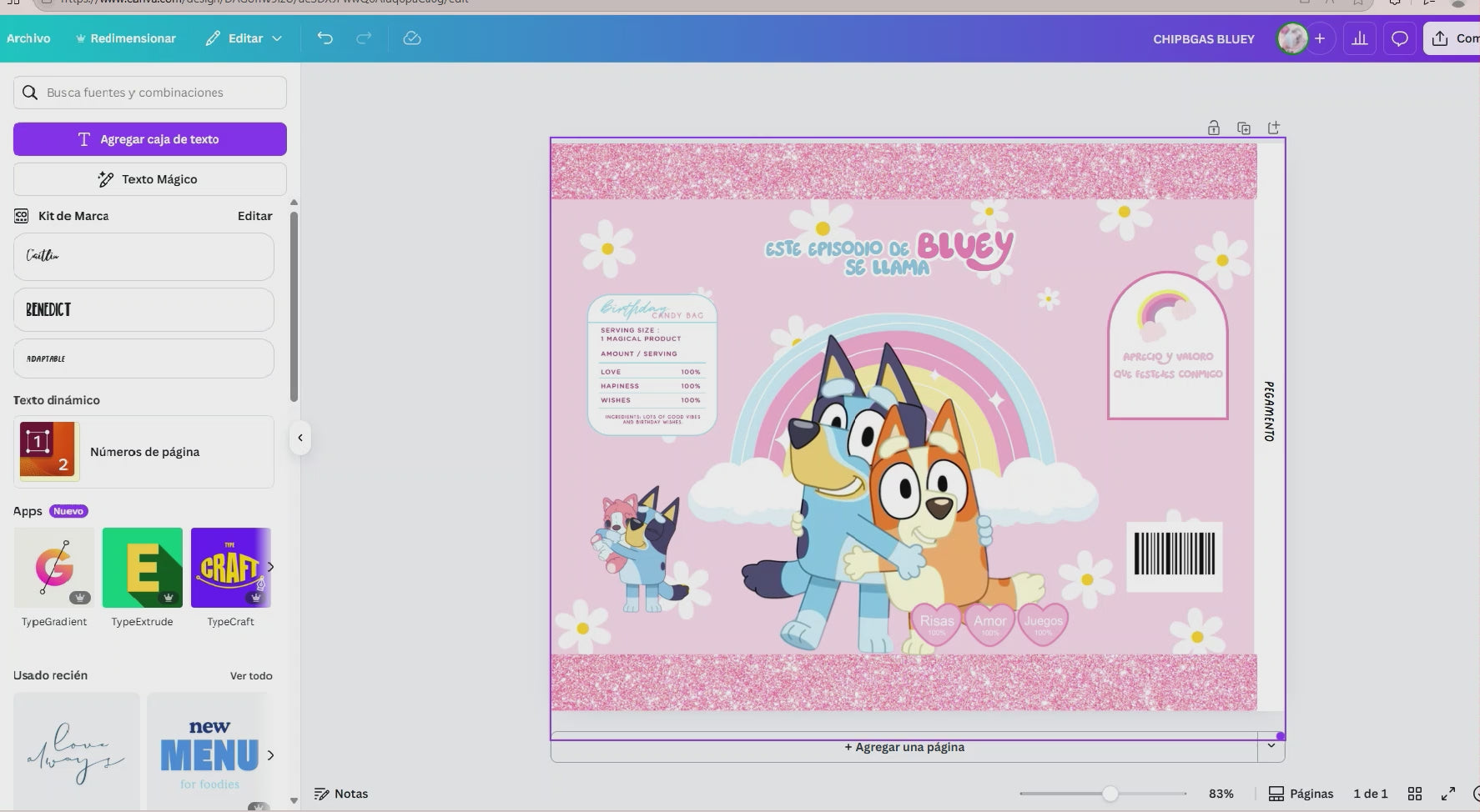 CHIPAGS BLUEY EDITABLES EN CANVA