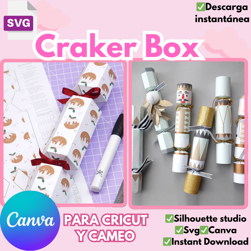 Craker Box, editable en formatos SVG y silhouette studio, personalizable para eventos y cumpleaños, cajita dulcera, plantilla Canva disponible