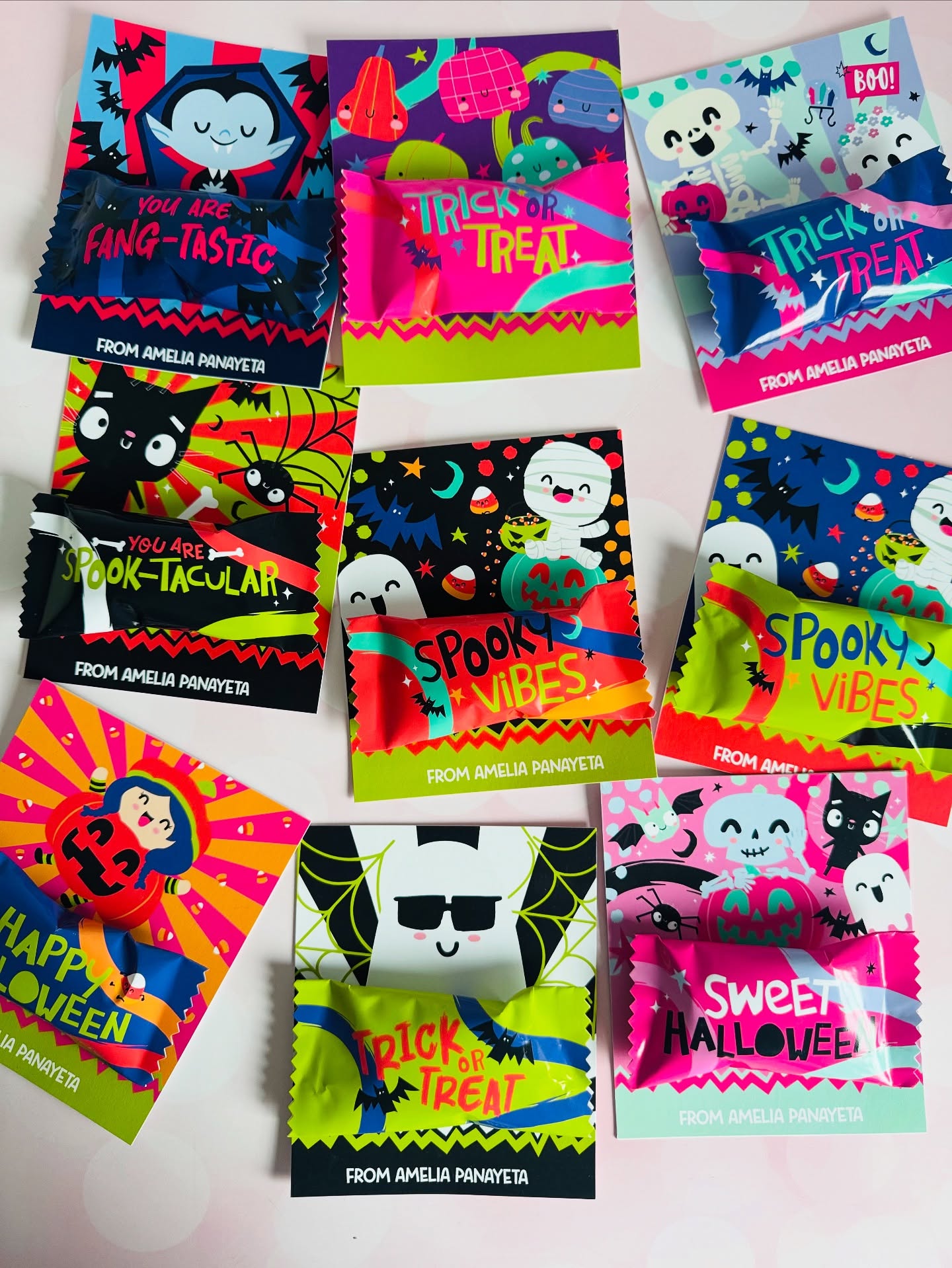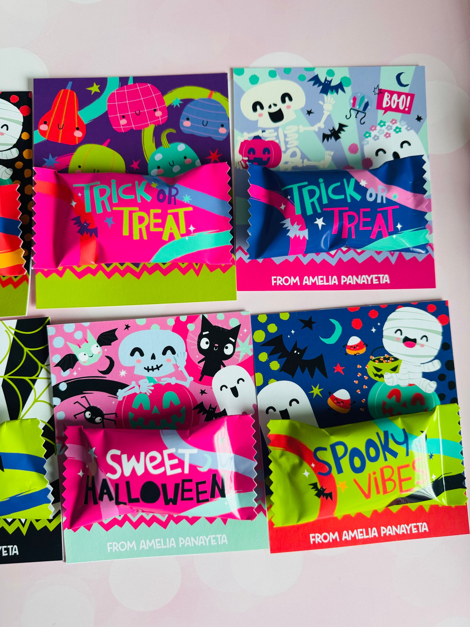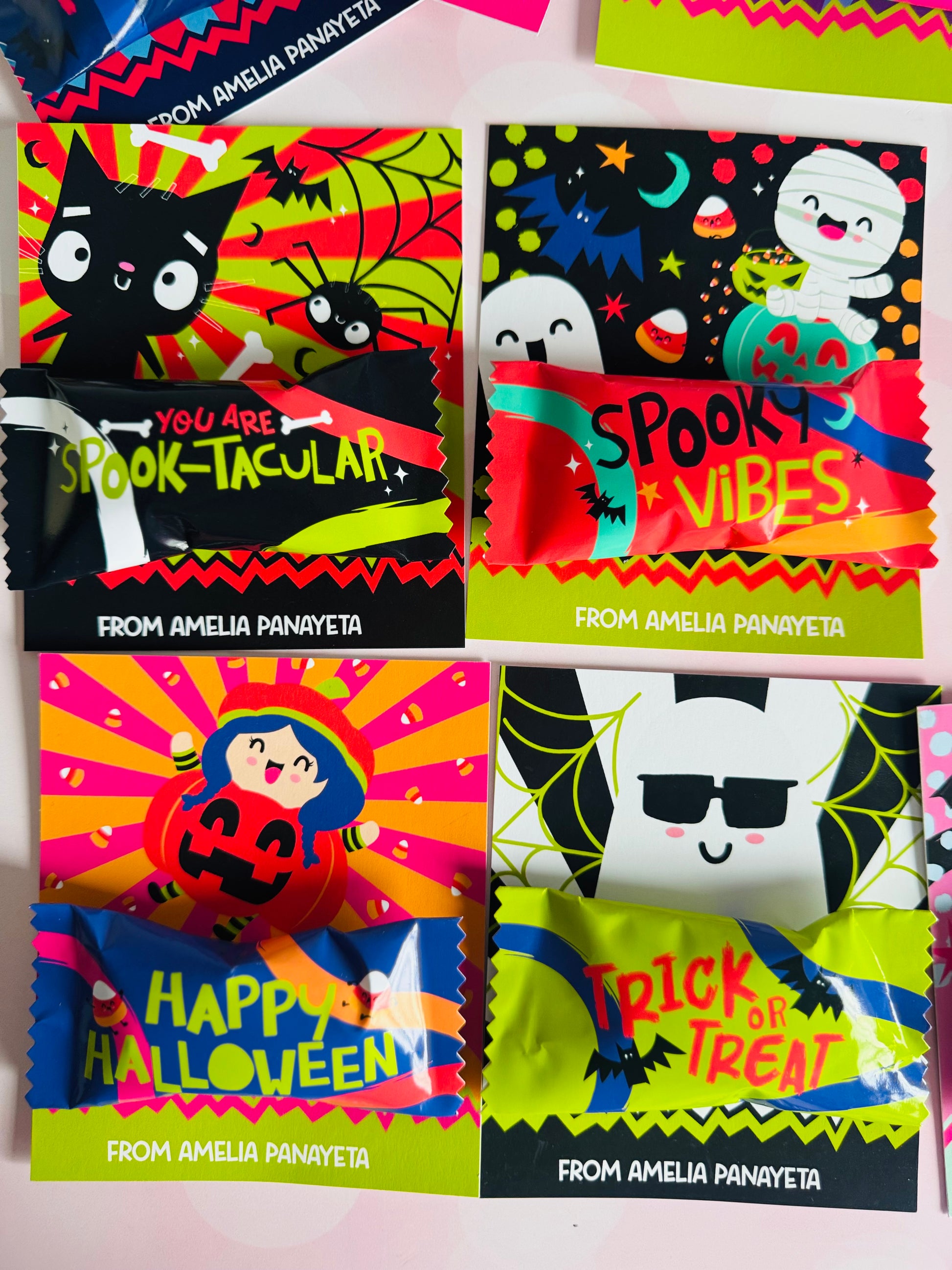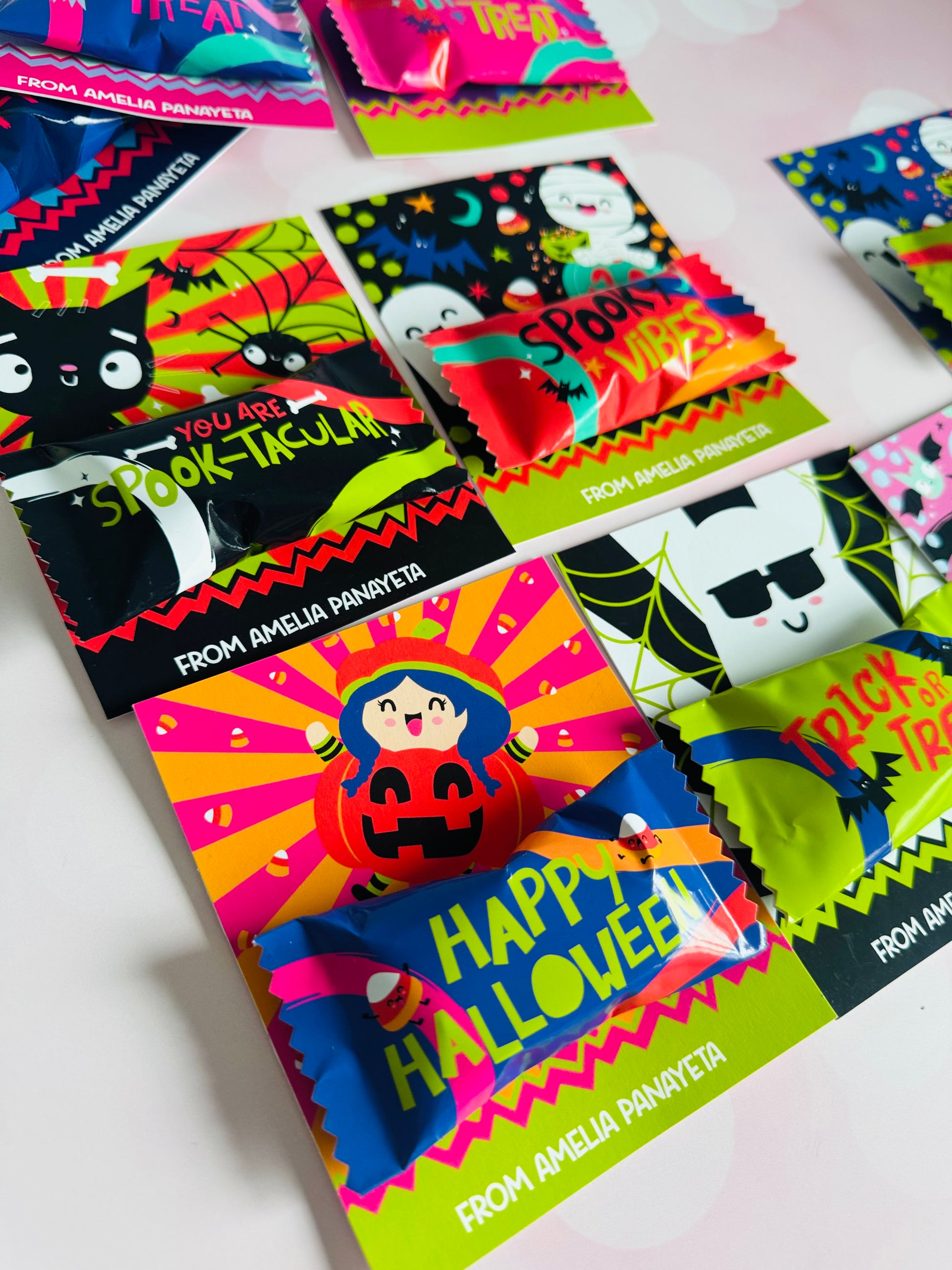 Incluye 10 tarjetones con envolturas de chocolates