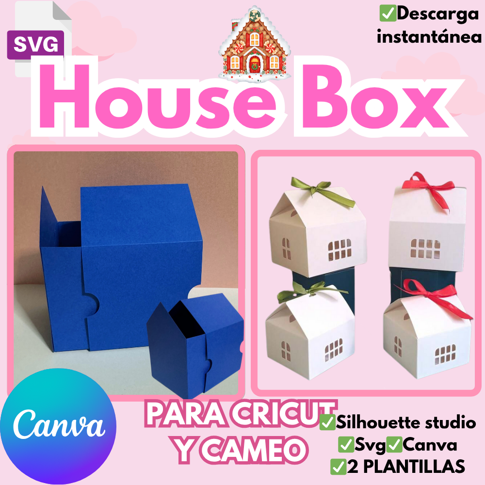 House Box, plantilla de corte para cajita en forma de casita para Cricut, Cameo y Canva,