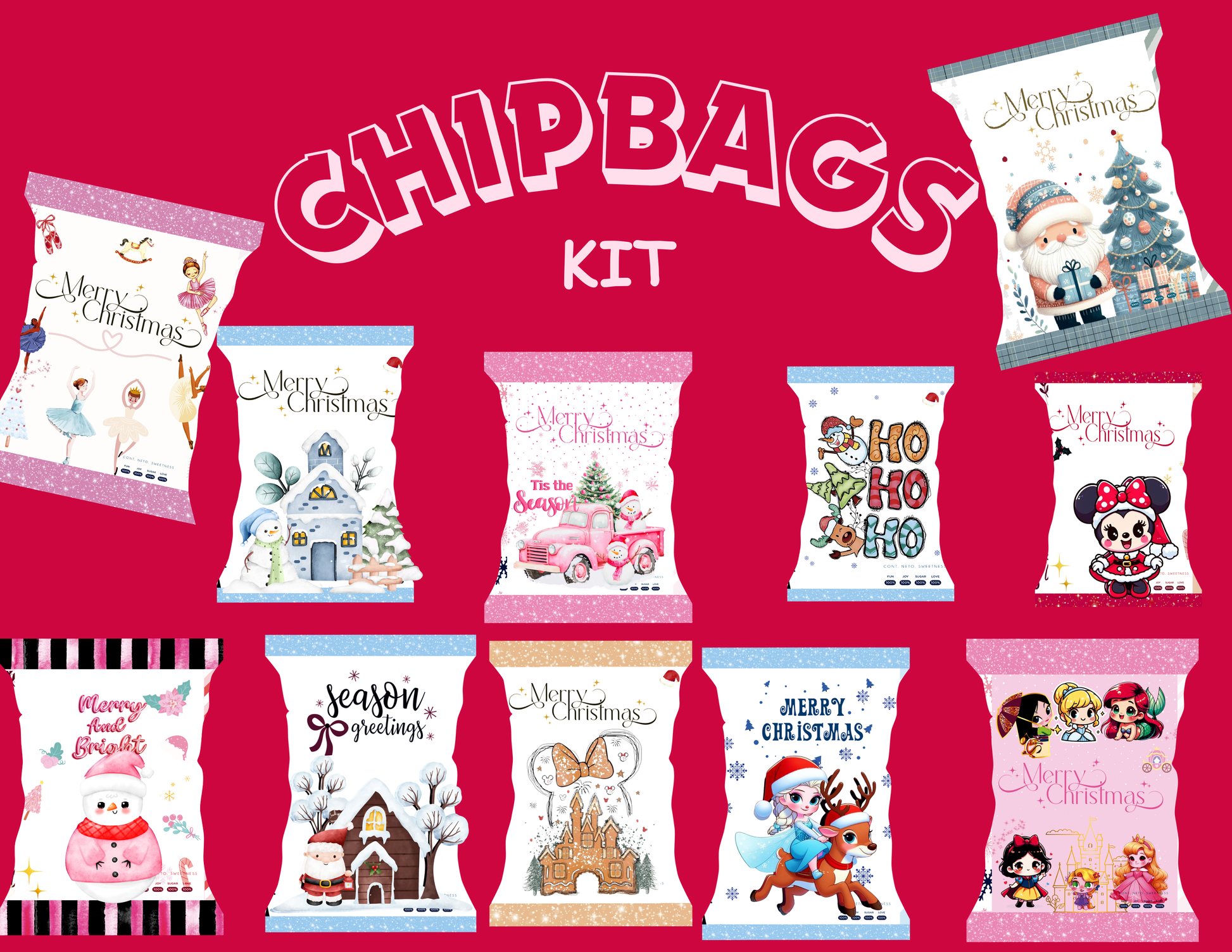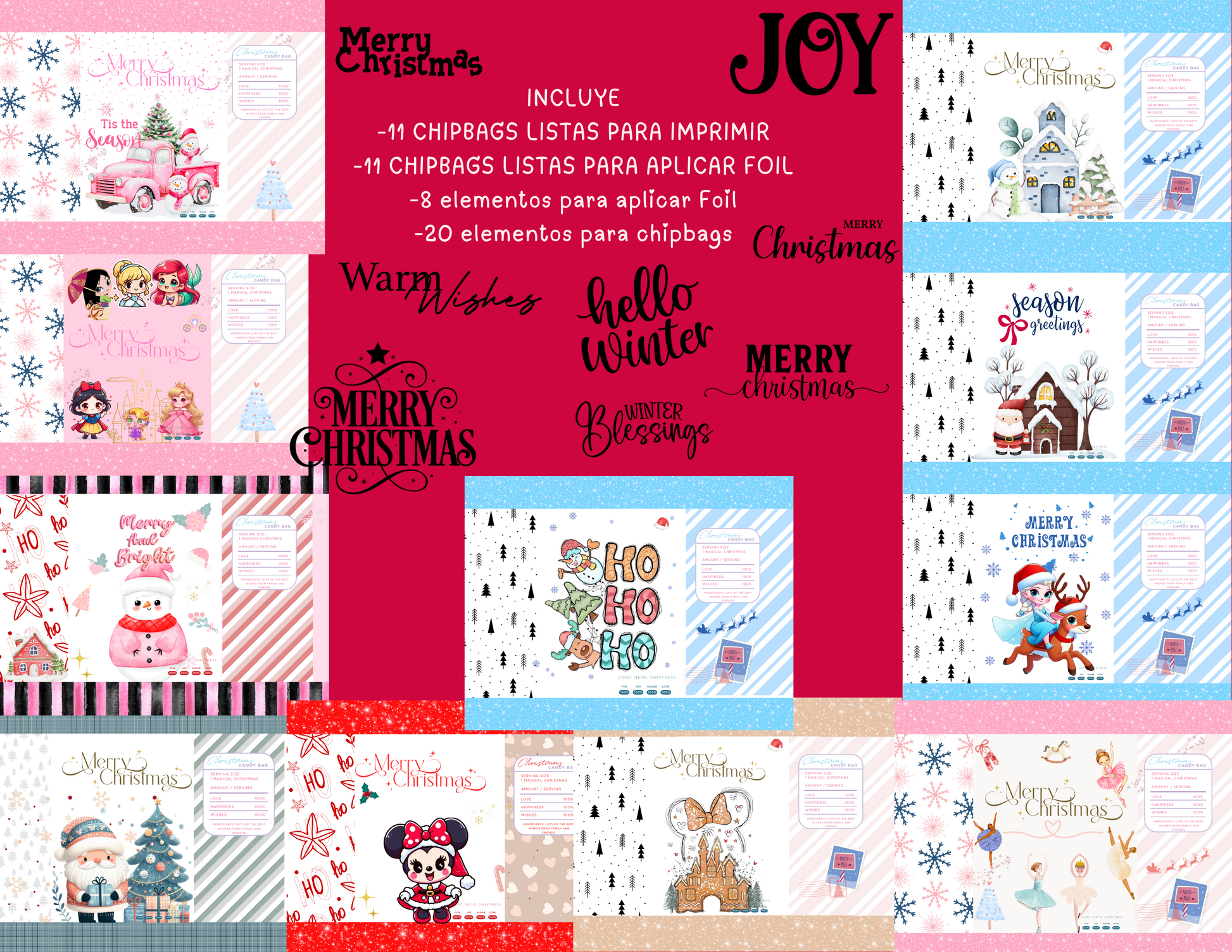 KIT Chipbags, Christmas Kit + PNG files 300dp + Diseños listos para imprimir, ( Candybag,elemento foil, elementos candybags)