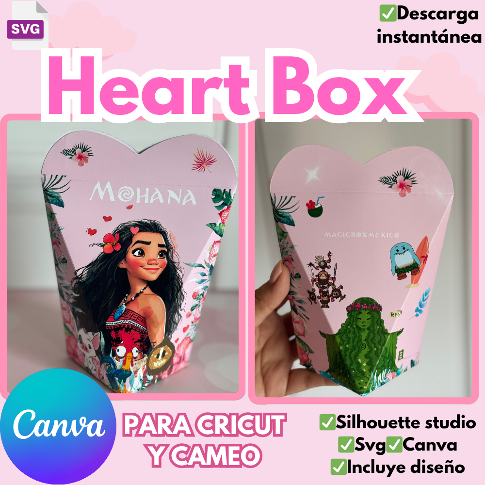 Heart Box, plantilla para edicion en CANVA y plotter de corte incluye plantilla en formato svg y silhouette Studio, diseño incluido