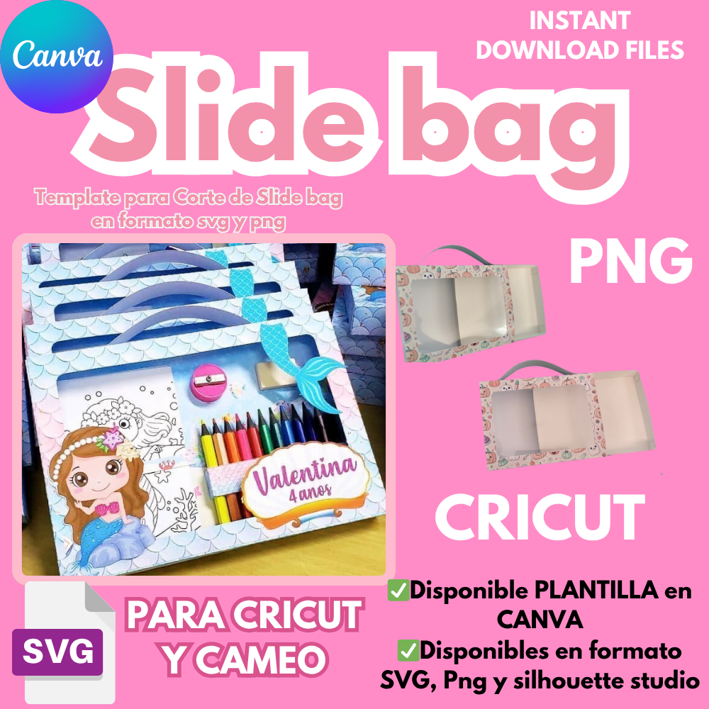 Template para slide bag, forma de maletín fácil agarre, como dulcero o para crayolas y para hojitas de colorear