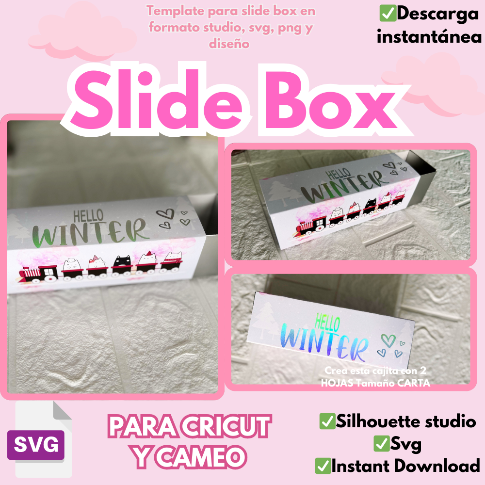 Slide BOX, plantilla de corte en formato svg, silhouette studio y png, diseños ilustrativos incluidos.